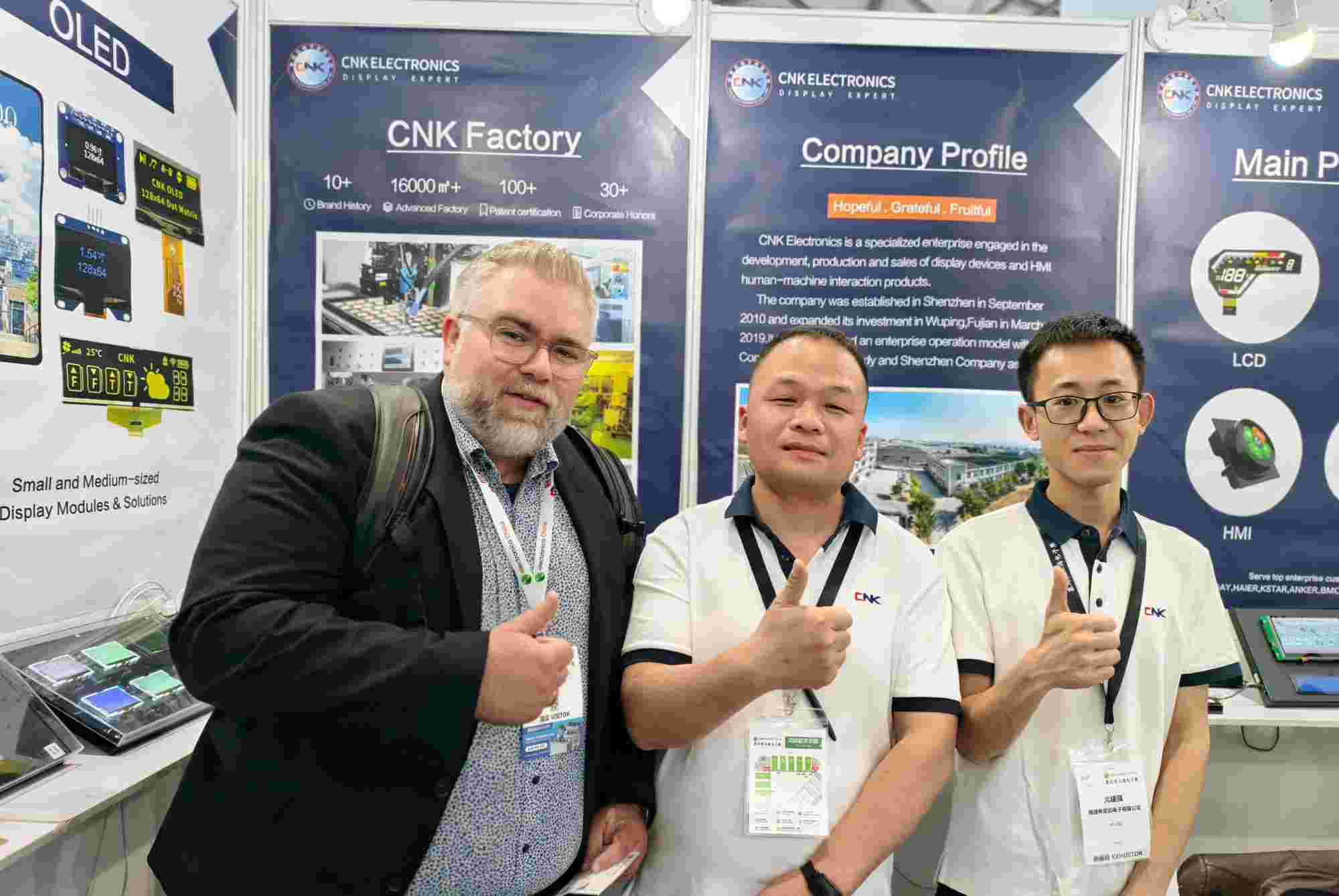 CNK Electronics (CNK i korthet) grundades i Shenzhen 2010 och utökade den världsledande fabriken i Longyan, Fujian 2019. Det är ett specialiserat och innovativt företag specialiserat på design, utveckling, produktion och försäljning av displayprodukter. CNK förser kunder med ett komplett utbud av kostnadseffektiva små och medelstora displaymoduler, lösningar och tjänster med utmärkt kvalitet över hela världen. Inriktad på teknik och hög kvalitet, CNK håller en hållbar utveckling, arbetar för att erbjuda kunderna bättre och stabila tjänster.